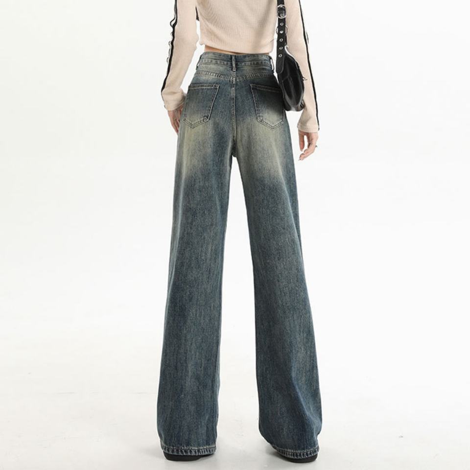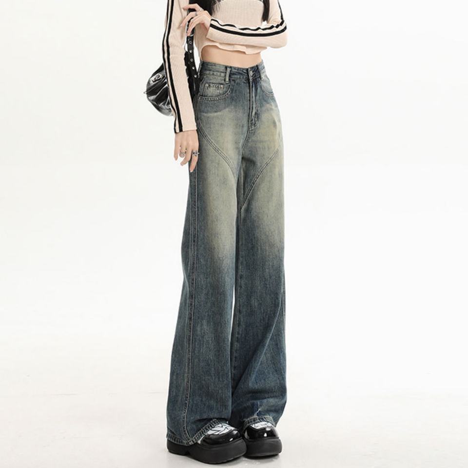 Pantalon en jean à jambes larges taille haute, style rétro américain, luxe discret, pour femmes, printemps-automne 2025 | Pantalons pour femmes Jeans