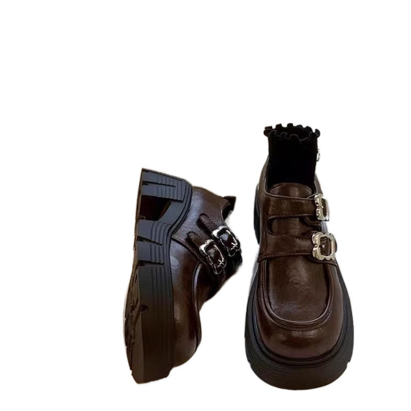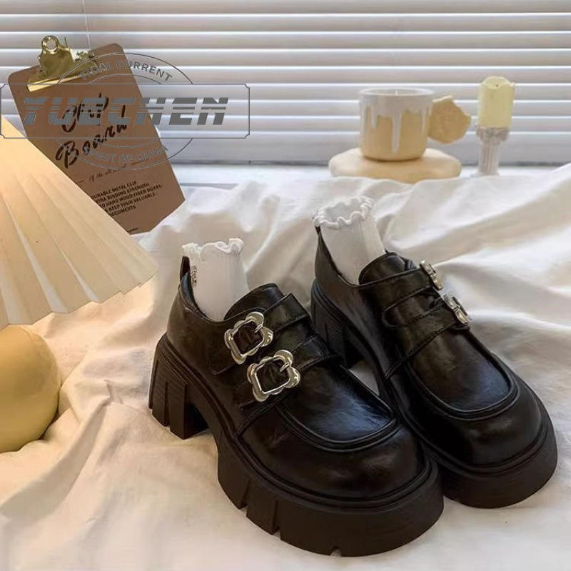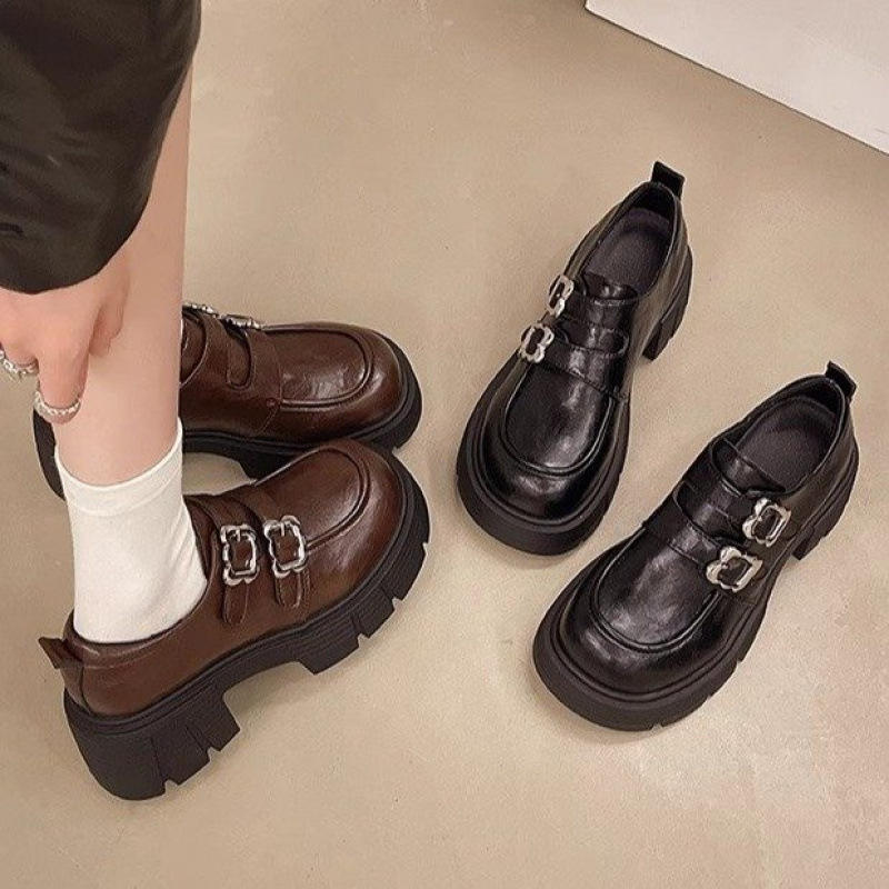 Nouvelles Chaussures Femme Printemps 2025 Style Britannique Mocassins Mary Jane en Cuir à Talons Épais et Semelles Basses en Bambou Noir