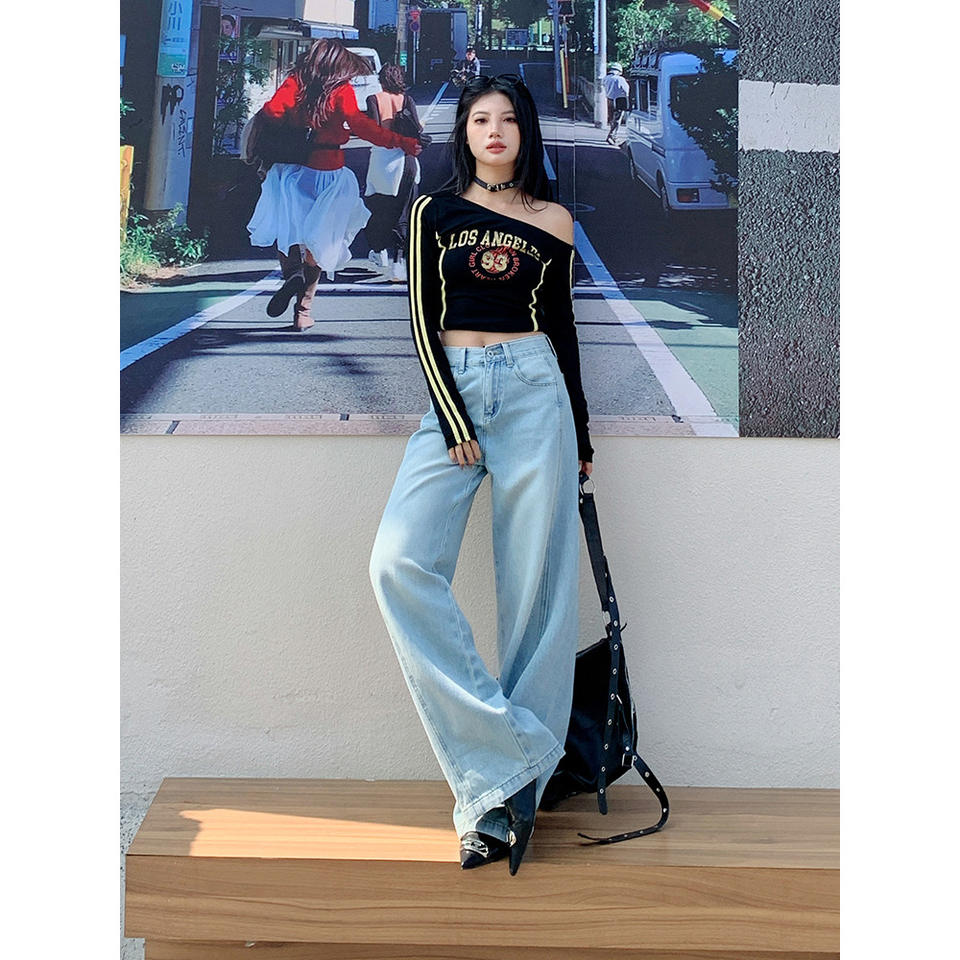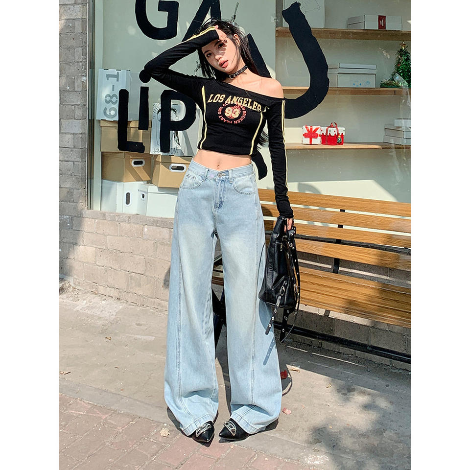 2025 printemps nouveau rétro bleu clair Lyocell pour épaisseur moyenne jambe large jean femmes taille haute minceur pantalon de vadrouille