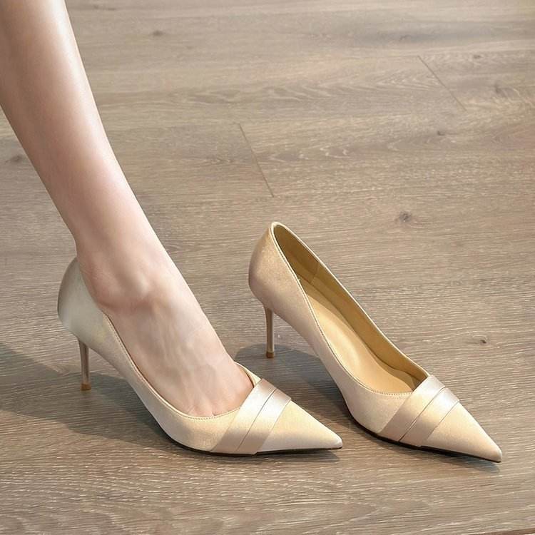 Nouvelles chaussures pour femmes printemps 2025, bout pointu français, talons aiguilles