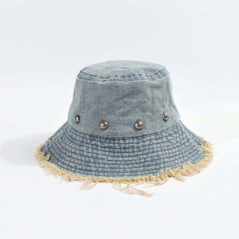 Nouvelle Collection Printemps-Été 2025 – Chapeau Bob en Jean Tendance pour Femme avec Bord Effiloché et Rivets Élégants, Idéal pour la Protection Solaire en Extérieur