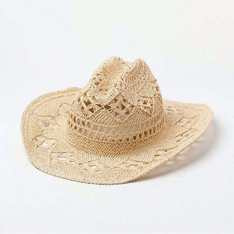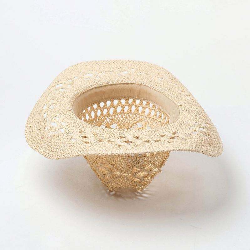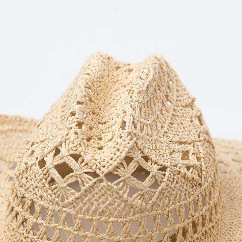 Nouveau Chapeau de Paille Cowboy Creux Printemps-Été 2025 – Tendance Décontractée pour l'Extérieur, Chapeau de Soleil à Large Bord en Paille de Papier