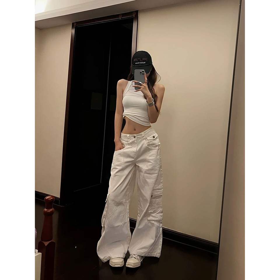 2025 printemps et automne nouvelle taille haute respirant ample jambe large vadrouille conception américaine femmes poche travail jean