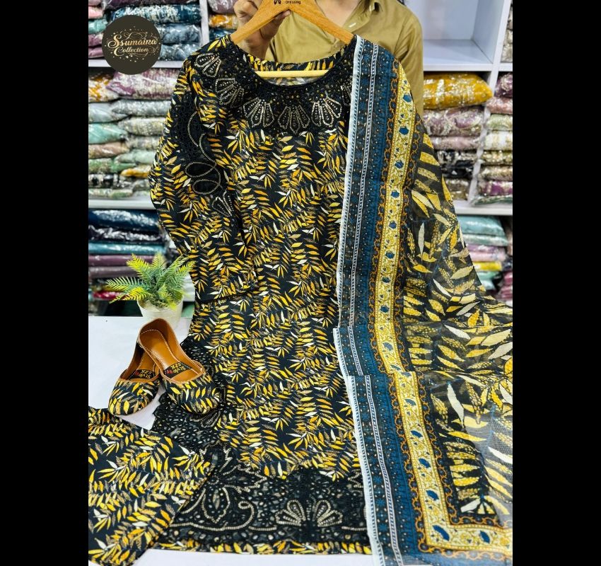 2025 Ssumaira's Nice Stitching 3pc. Ensemble Kameez Salwar Duppata avec broderie de fil et de sequins, imprimé de diamants