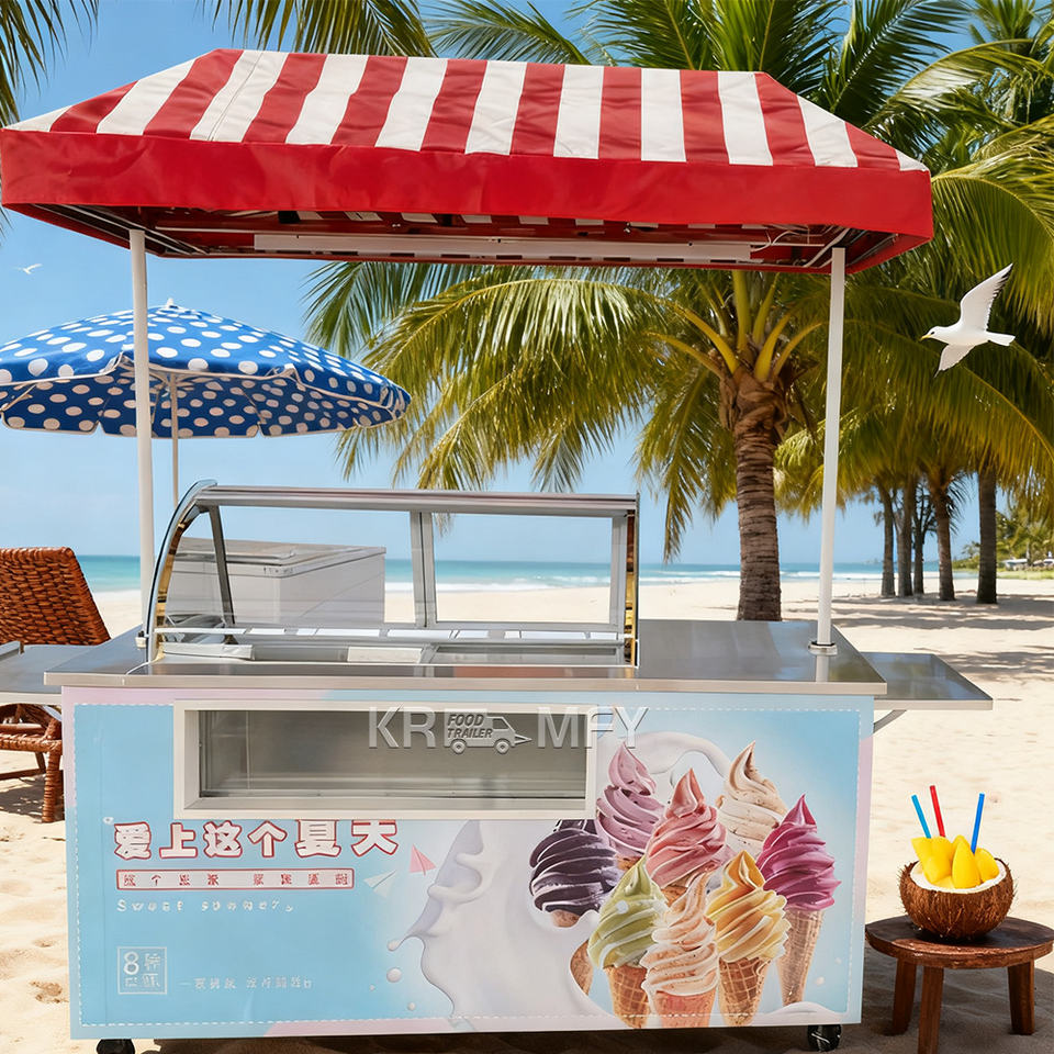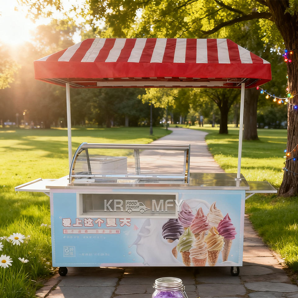 2025 Stainless Steel Bicycle New Design Outdoor Street Hotel Tricycle Food Mobile Truck Ice Cream Cart