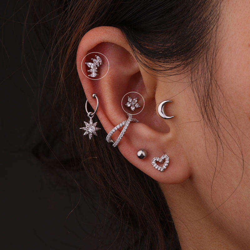 2025 acier inoxydable corps Cartilage oreille Tragus conque tour hélice vis arrière goujon 16G étoile Zircon Piercing boucles d'oreilles pour les mariages