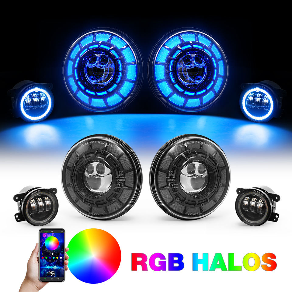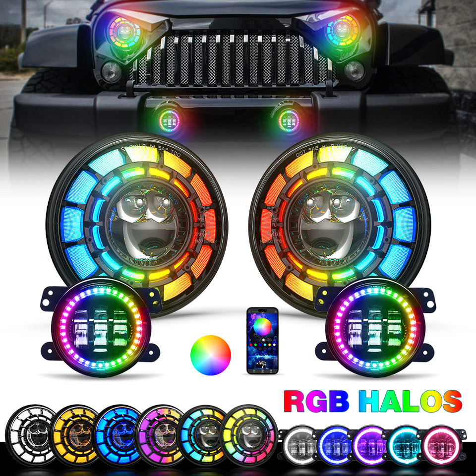 2025 Starry RGB Halo 7 pouces H6024 phares LED phares 4 "antibrouillard lampe à LED pour Jeep Wrangler JK illimité JKU 2007-2018