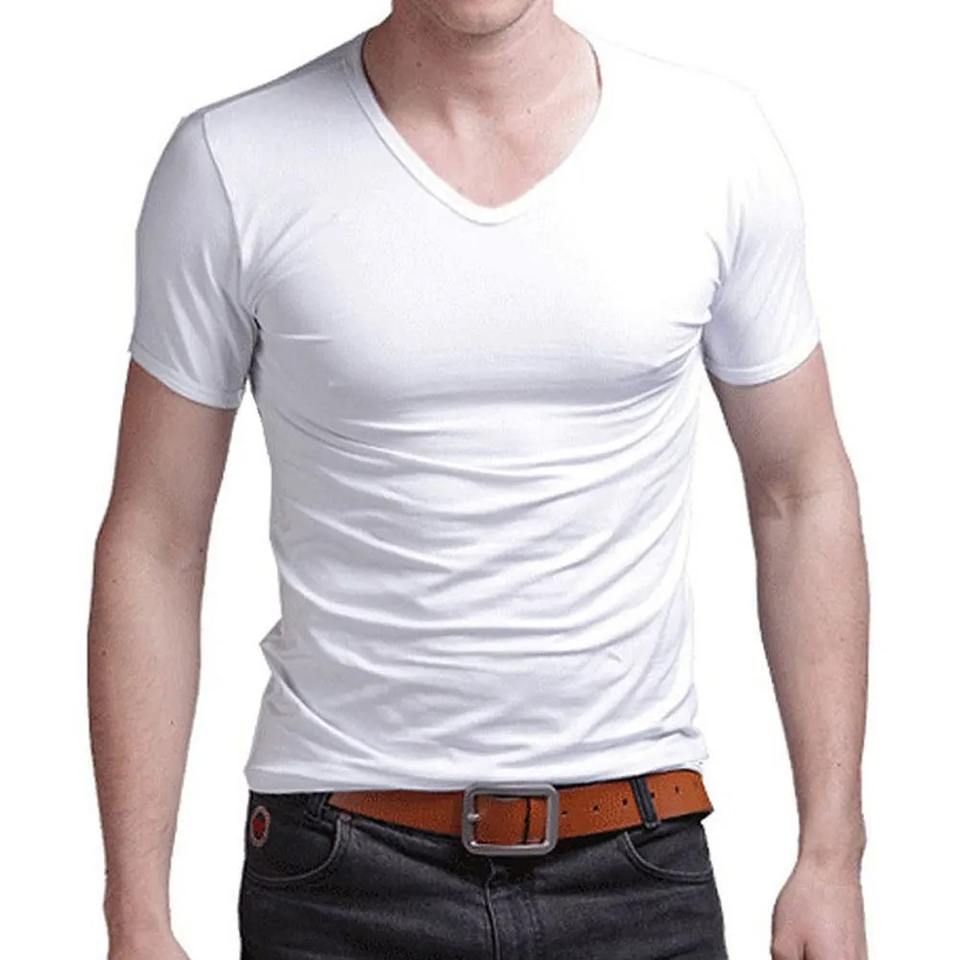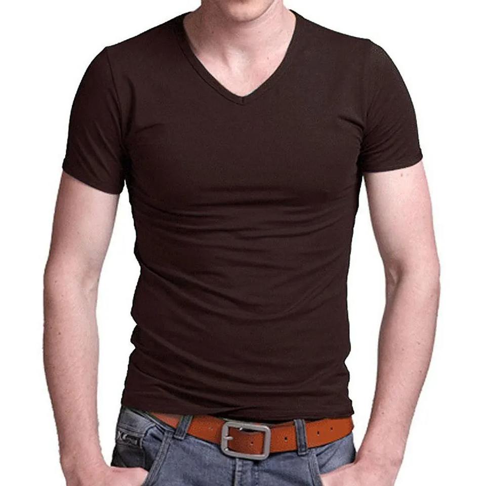 T-shirt Homme Uni Col V Extensible Grande Taille 2025 – Manches Courtes, Écologique, Respirant, Anti-Plis