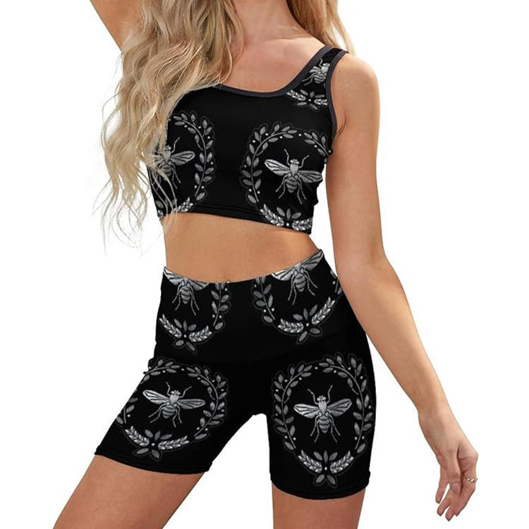 2025 Stylish design Yoga Vest Shorts Set Women Leggings With Sports Bra Outfit Yoga Sets High Quality