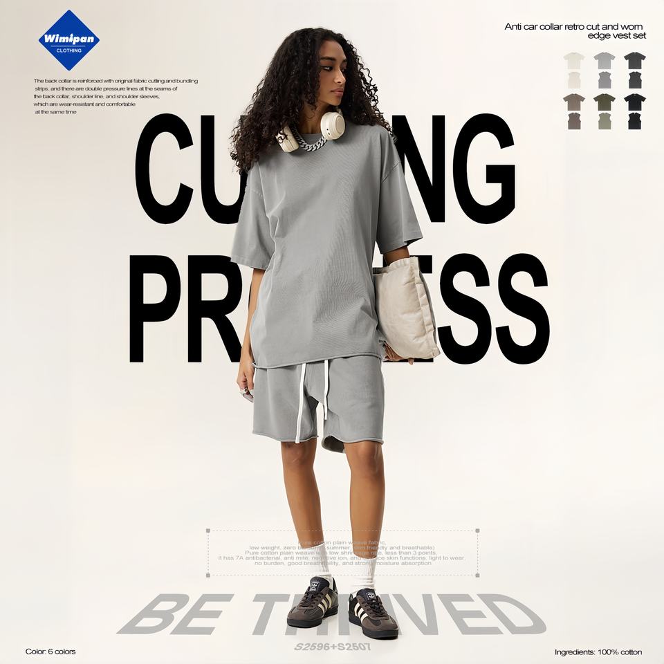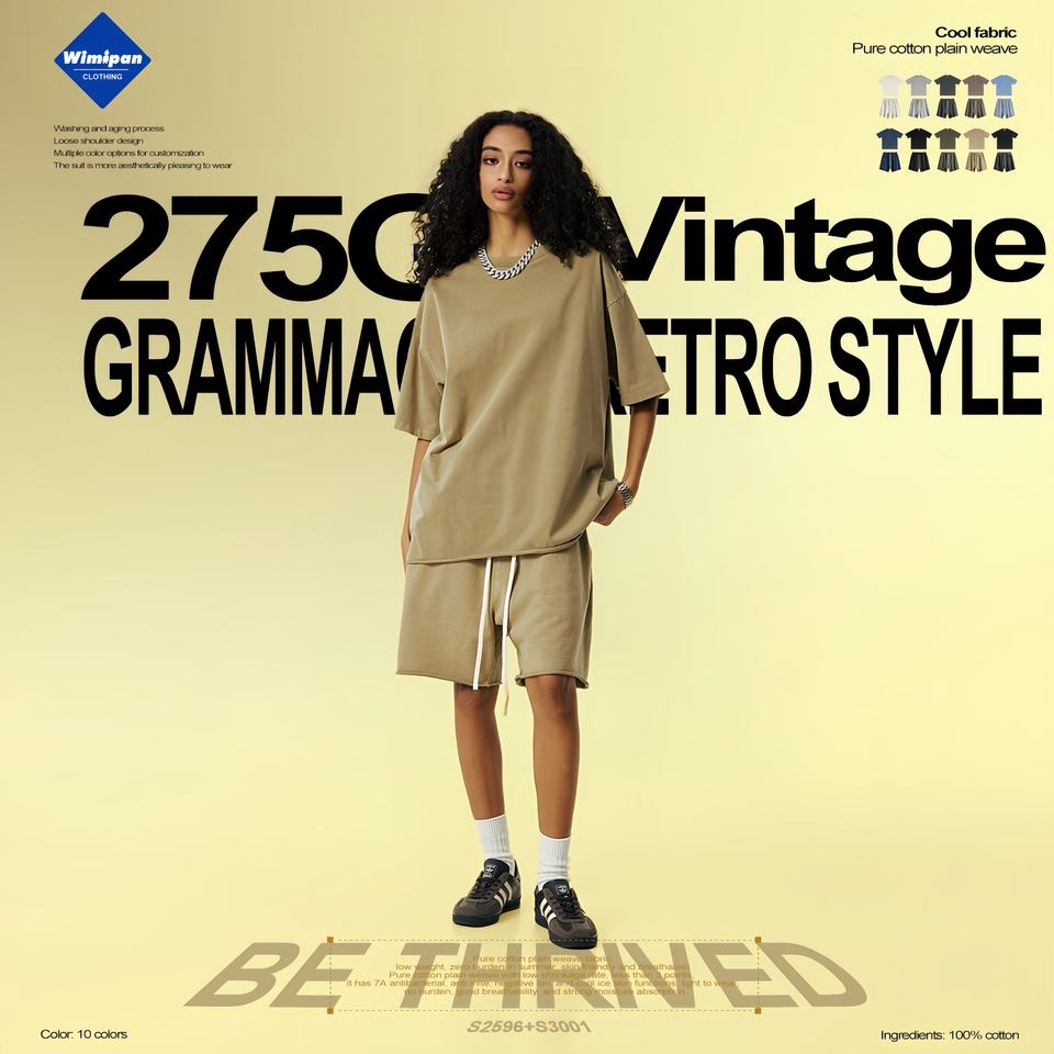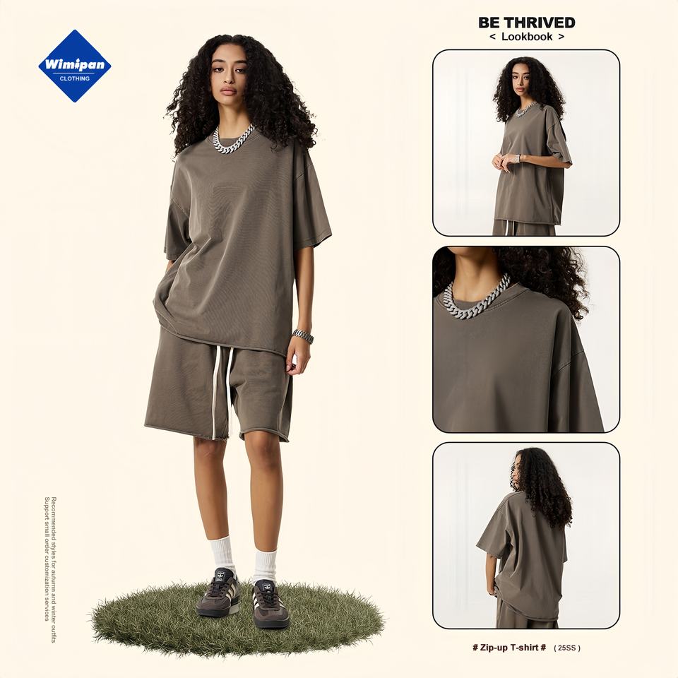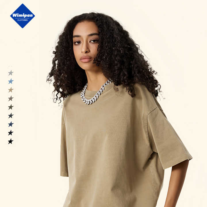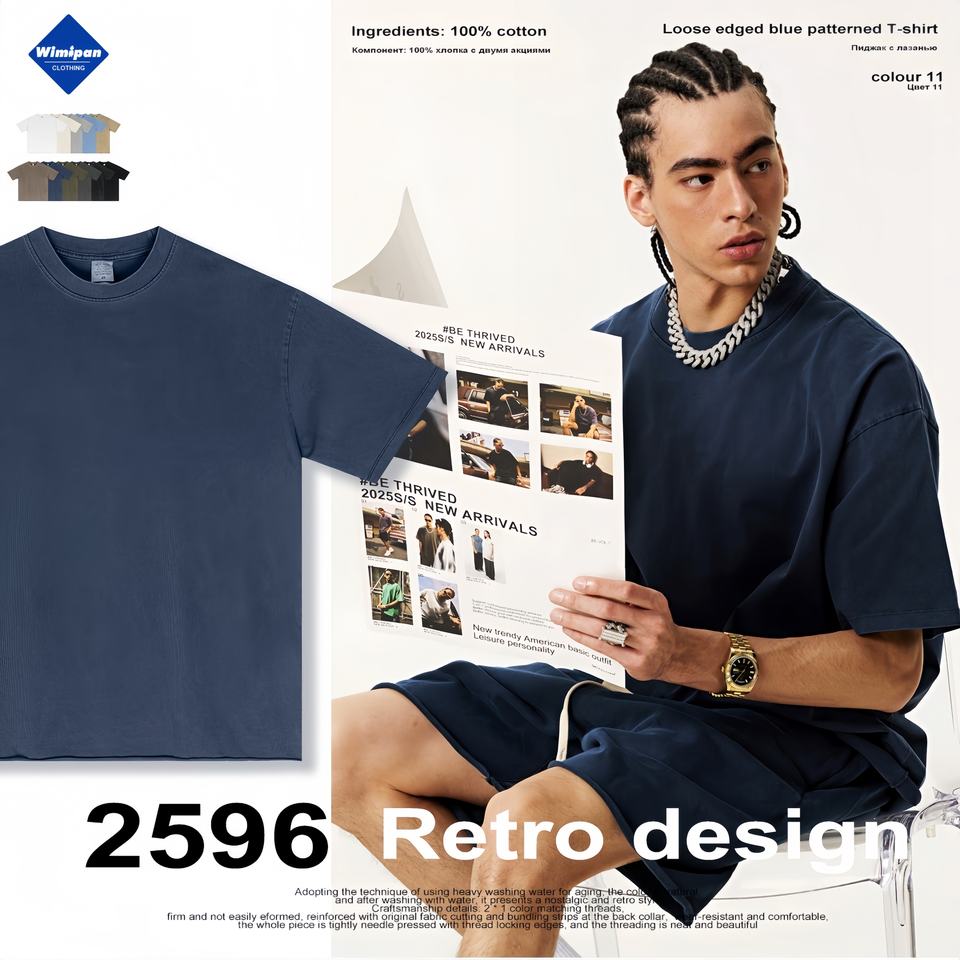 2025 été goutte épaule ample méridien à manches courtes lourd transfrontalier grande taille cou coton T-Shirt hommes tricoté Hip Hop