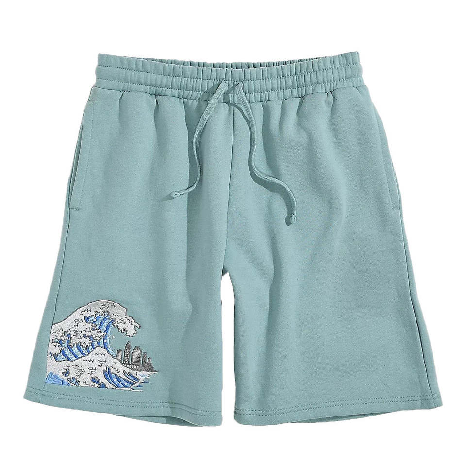 Shorts de sport et de surf brodés mi-longueur style urbain été 2025, extensibles quatre directions, en coton respirant, décontractés, amples et à séchage rapide