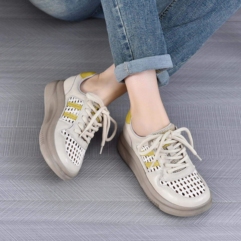 2025 été Version coréenne première couche peau de vache chaussures décontractées pour femmes polyvalent respirant blanc grosses chaussures fond épais