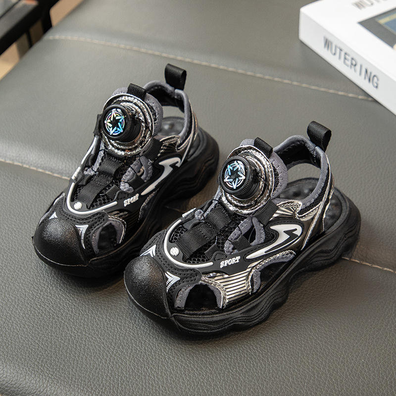2025 Summer New Boys' Baotou Sandals Hollow Breathable Sports Beach Shoes for Large Children and Babies