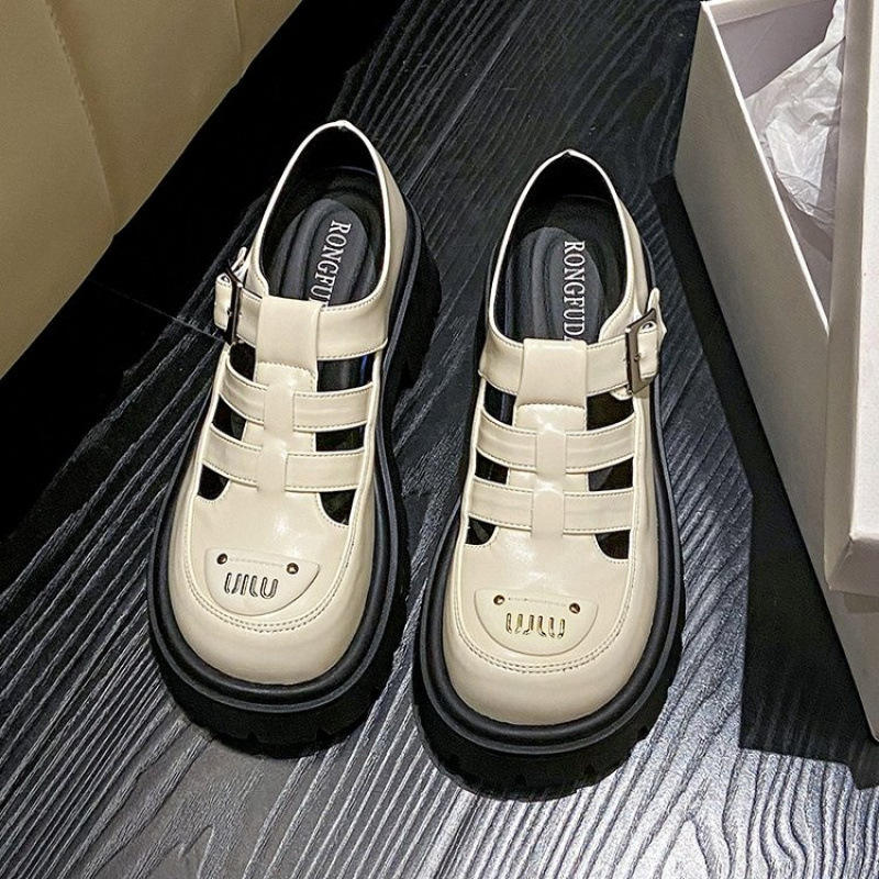 2025 Summer New Outdoor Women's Height-Enhancing Sandals Platform Hole Hollow Woven Pig Cage Design Thick-Soled New Shoes