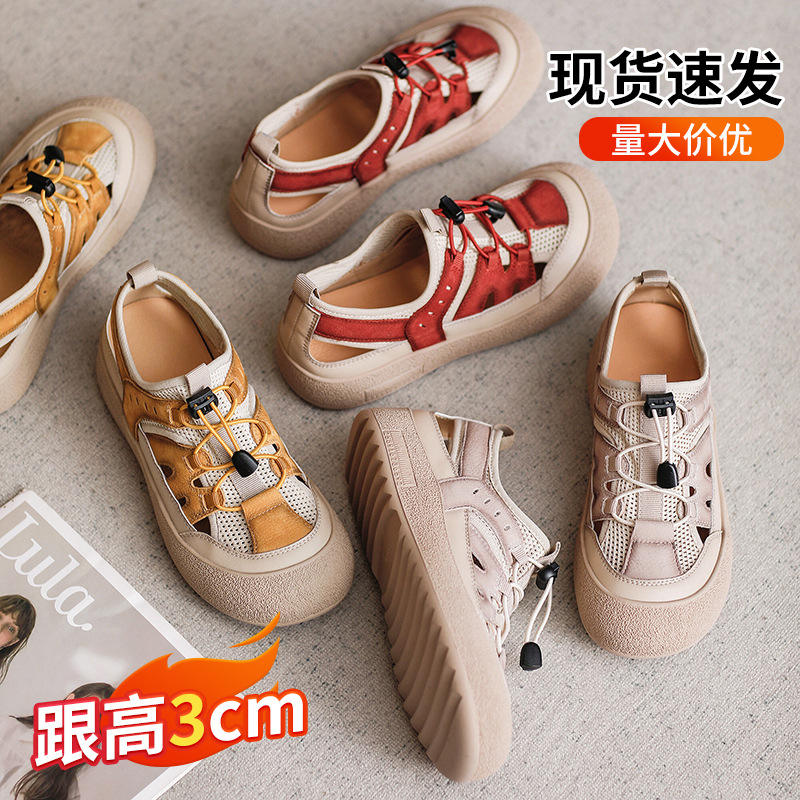 2025 Summer New Retro Women's Casual Shoes First Layer Cowhide Leather Mesh PU Insole Hollow Outdoor Sports Sandals for Walking
