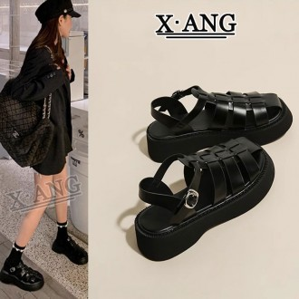 2025 Summer New Songpyeon Women's Heeled Sandals Roman Style Real Leather with Thick Sole Knitted Pig Cage One Button Design