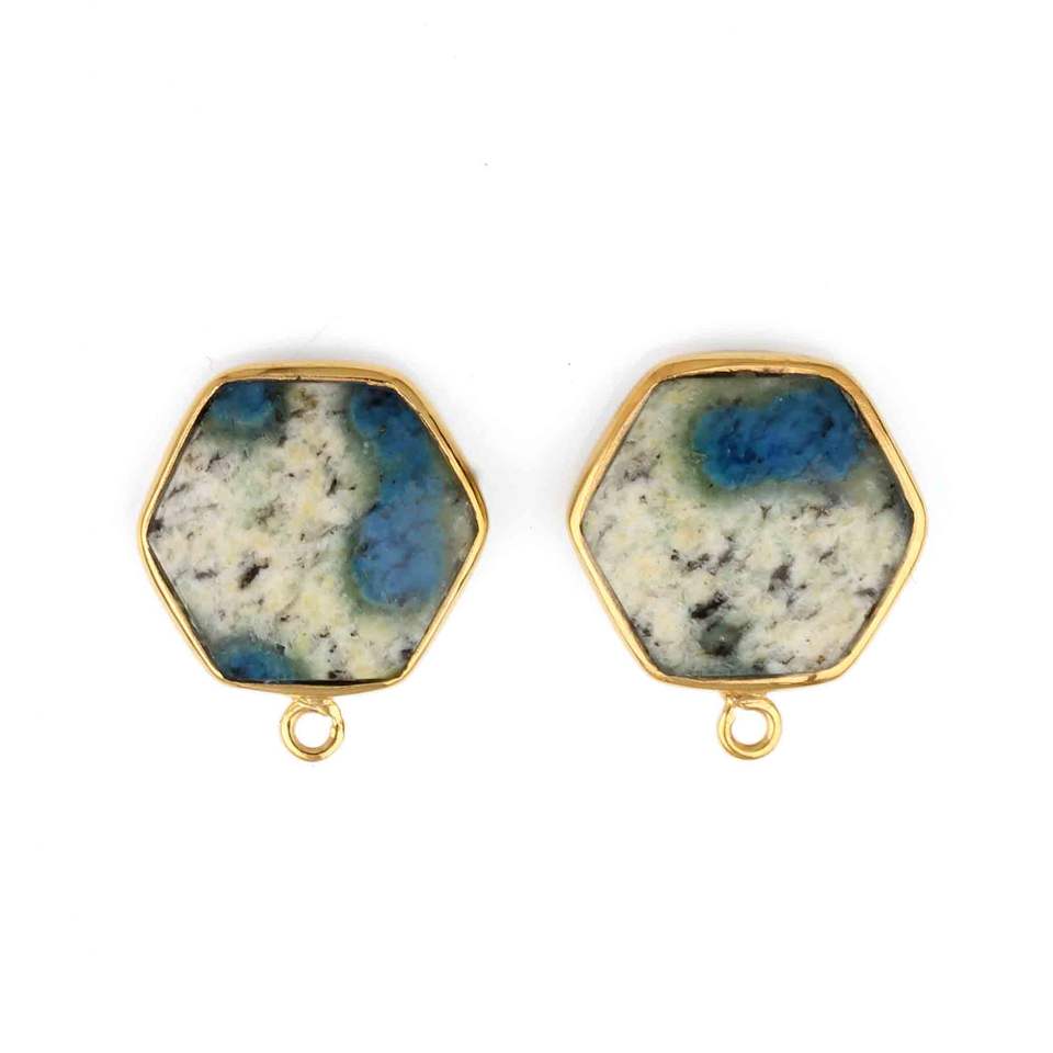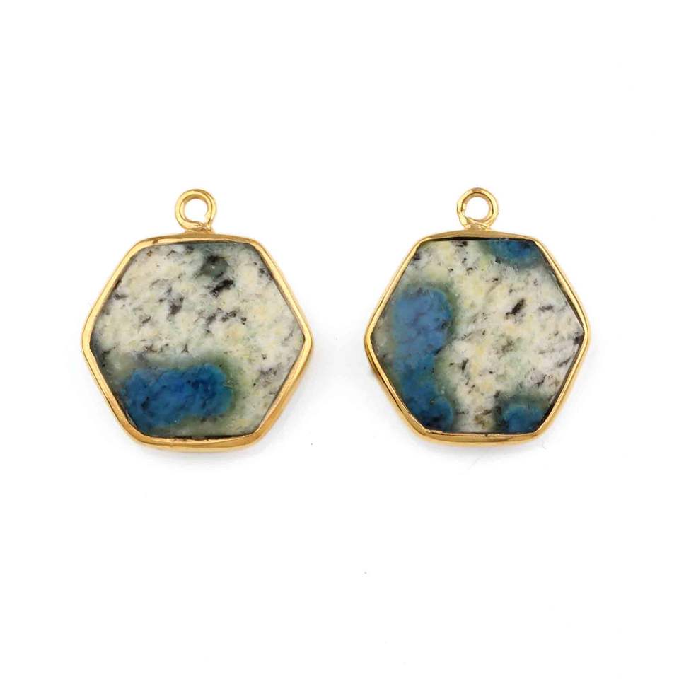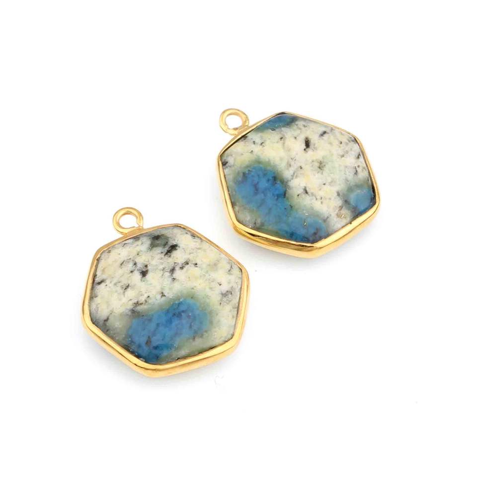 Pendentif Charme Fin en Argent Sterling 925 Plaqué Rhodium Hexagonal 12mm de Qualité Supérieure 2025 avec Pierre Naturelle Jaspe K2 pour Femme