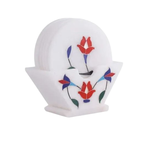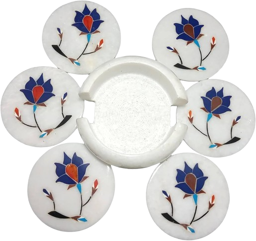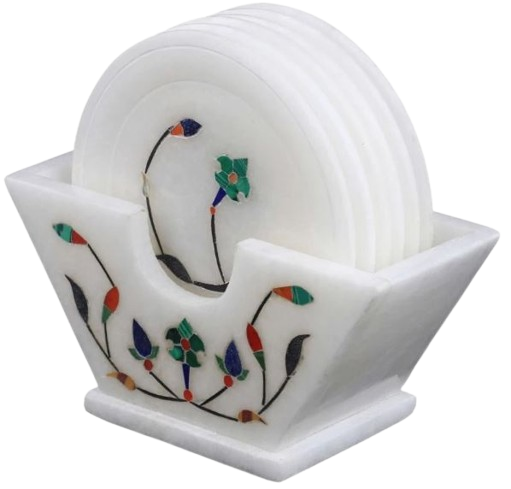 Ensemble de sous-verres en marbre incrusté avec support, écologiques, faits à la main, durables, pour la maison et la restauration - Meilleures ventes 2025