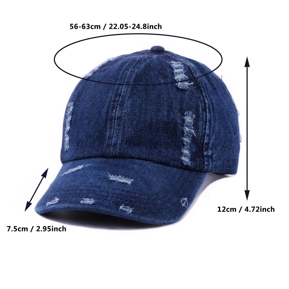 2025 Top Trendy Torn Denim Baseball Cap with Adjustable Metal Clasp Unisex Washed 100% Cotton Hat