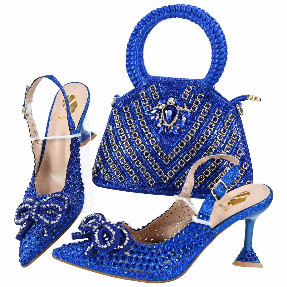 Ensemble chaussures et sacs assortis de créateur italien tendance 2025, taille 37-42, argenté, avec strass, en maille, talons hauts pointus pour femmes, pour robes de soirée et de bal 2025