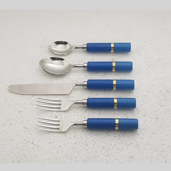 Ensemble de couverts en acier inoxydable fait main avec manche en résine de style laiton tendance 2025, moderne, cinq pièces, cuillère, fourchette, passe au lave-vaisselle