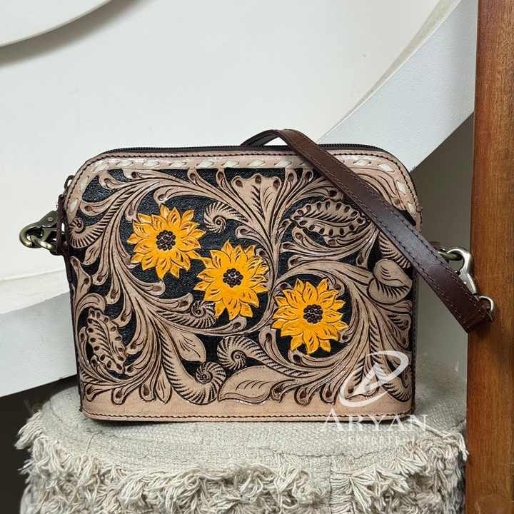 Product Name:Hand Tooled Genuine Leather Sunflower Crossbody Bag