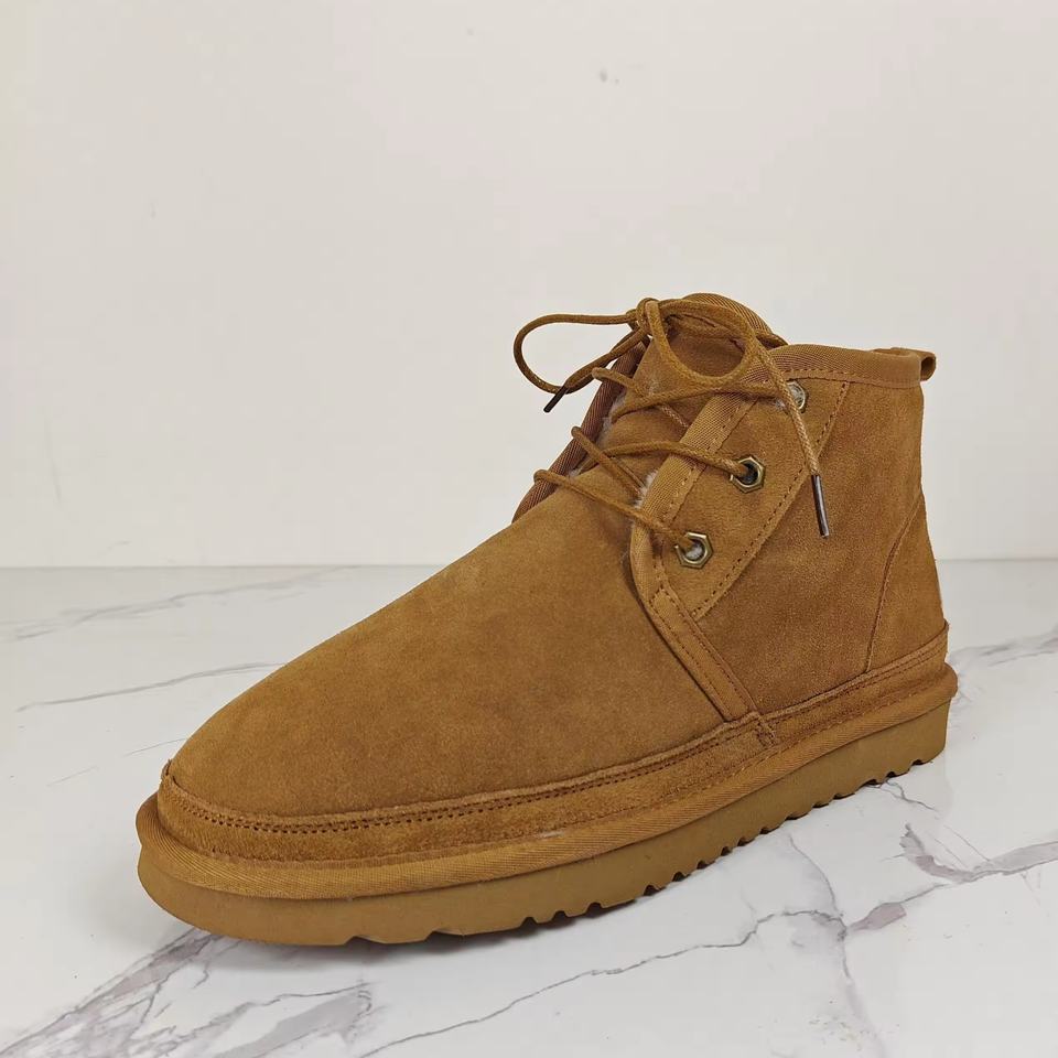 Bottes de neige tendance pour hommes 2025, bottes UGGSS à la cheville, cuir de vache, doublure en polaire, respirantes, légères, automne-hiver, thermiques, antidérapantes