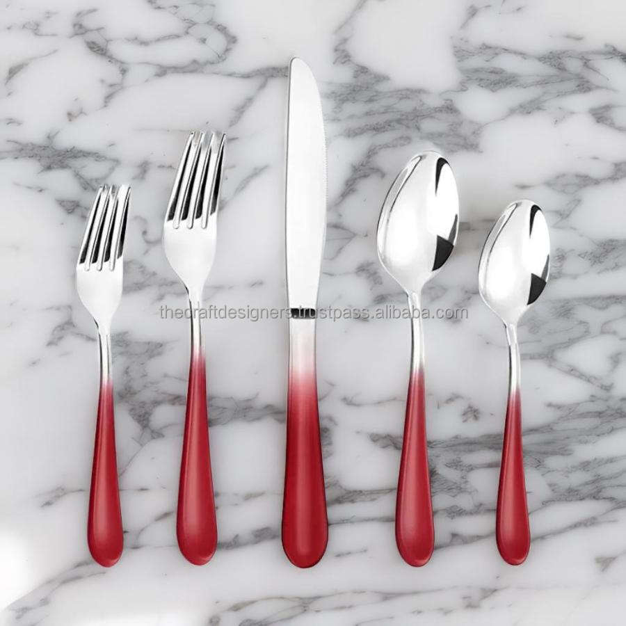 2025 tendance rouge ensemble de couverts en acier inoxydable de haute qualité saint valentin cadeau décor à la maison rouge argent couverts ensemble Style moderne