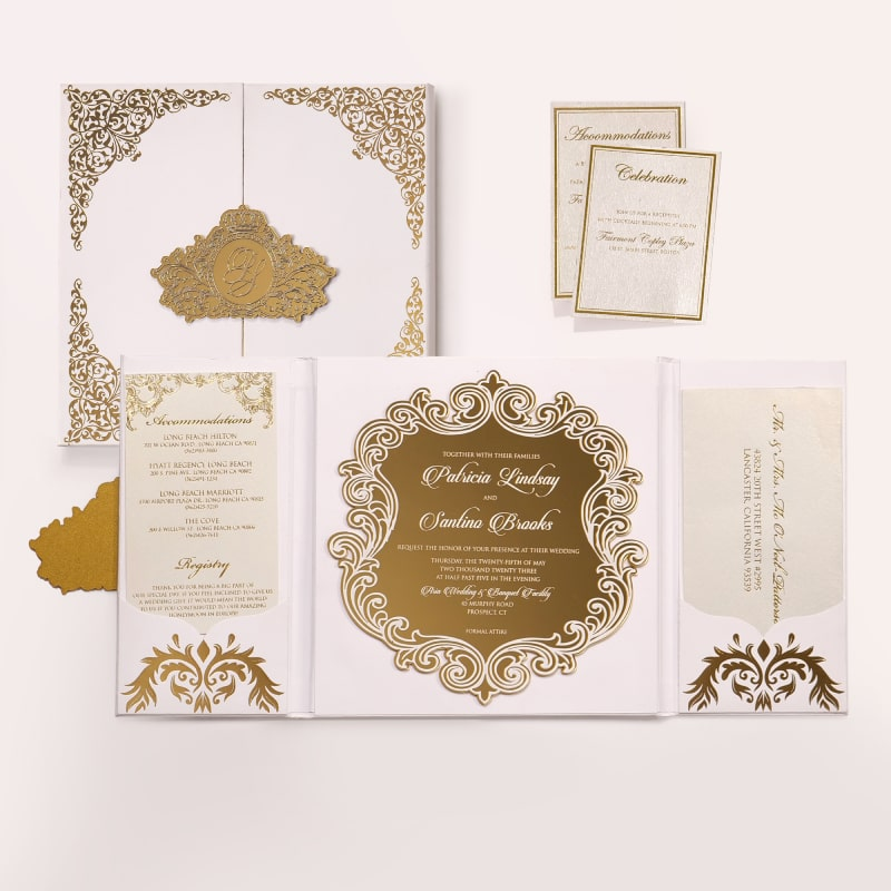 Include:1-2mm thickness acrylic card+envelope+Wax Seal+rsvp card