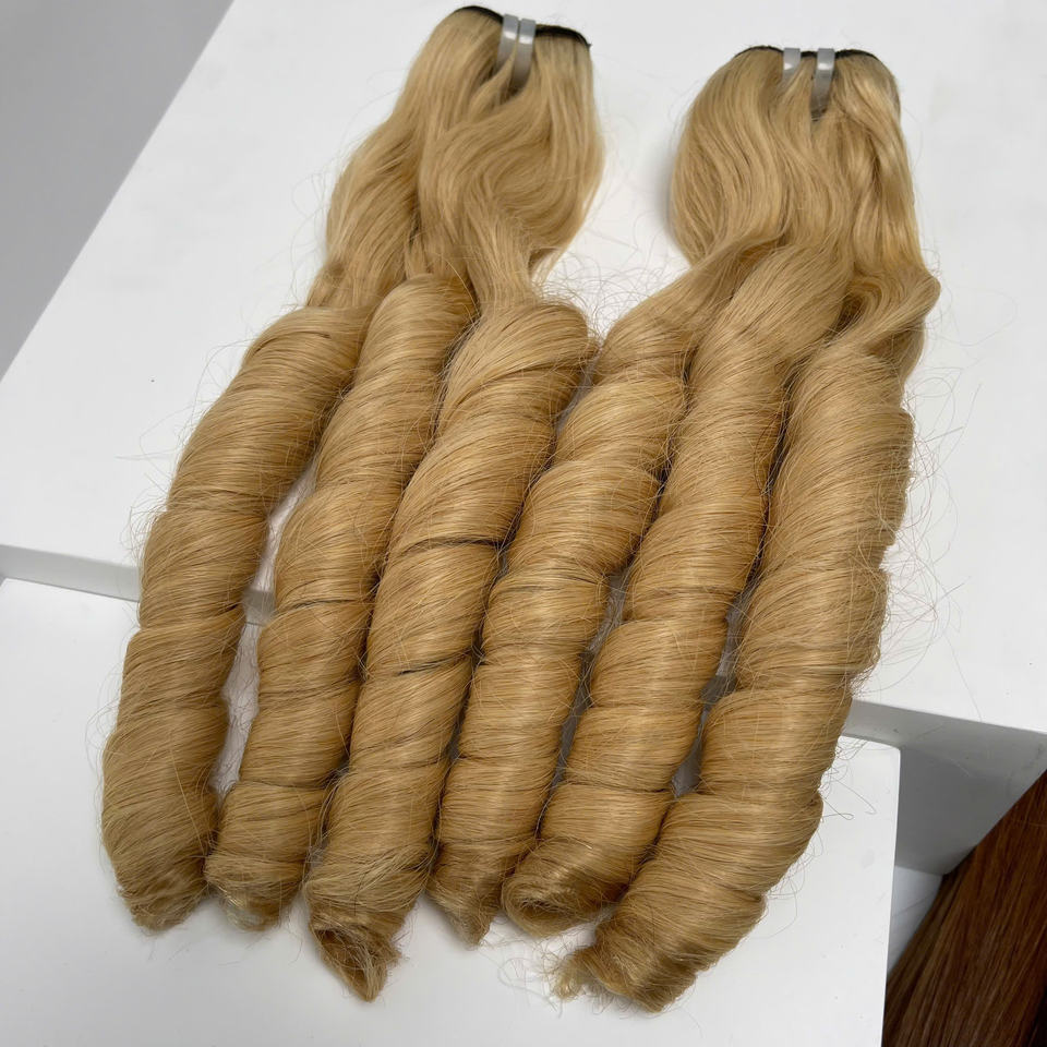 2025 Trendy Bouncy Curl 100% Cuticle Aligned Vietnamese Hair Extensions Blonde Hair No Tangle No Shedding Hair Weave