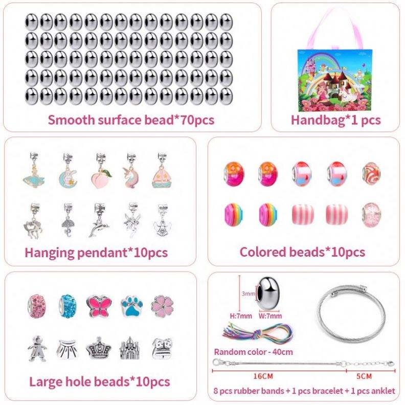 2025 Style à la mode en gros Bracelet perlé en vrac Kit de bijoux à bricoler soi-même en acier inoxydable et accessoires de mode 110 pièces fournitures pour enfants