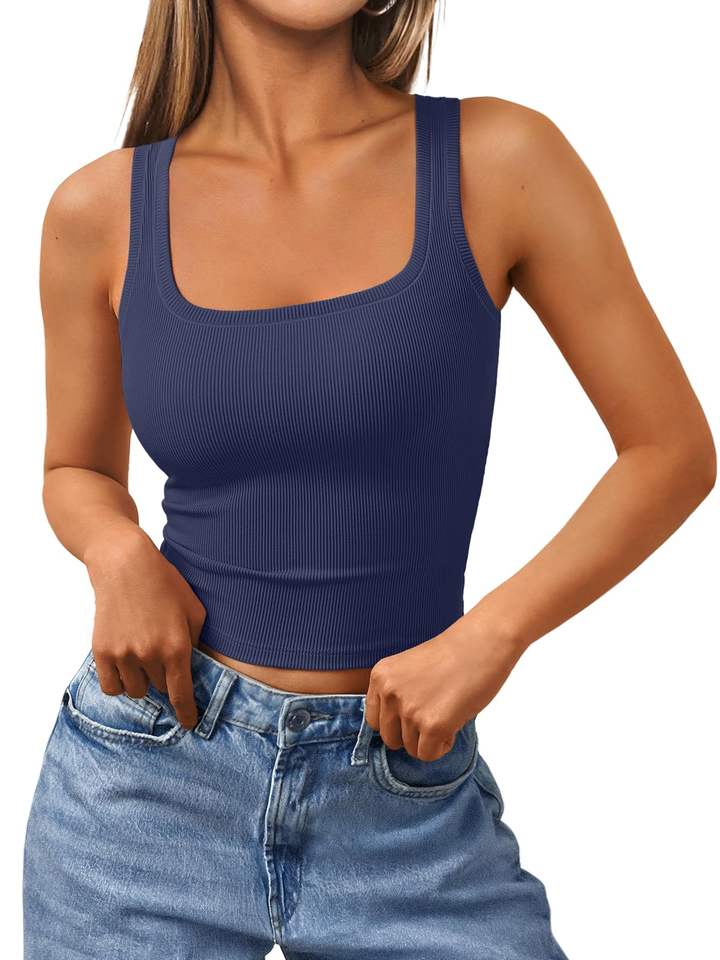 2025 Trendy Women's Summer Workout Clothes Square Neck Cropped Ribbed Sleeveless Camisole