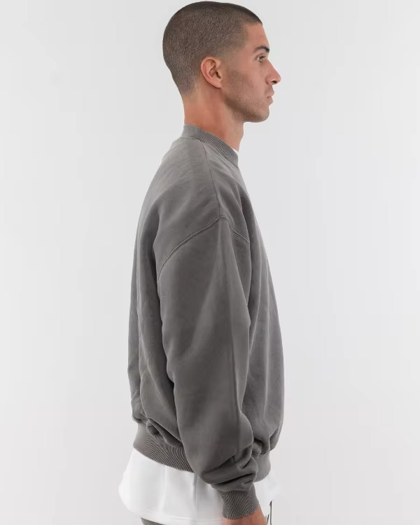 2025 Style Unique Hommes Cou Sweat Lourd Coton Organique Sweat Logo Personnalisé Blanc Surdimensionné Ras Du Cou Sweat