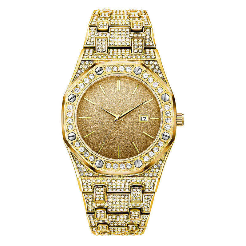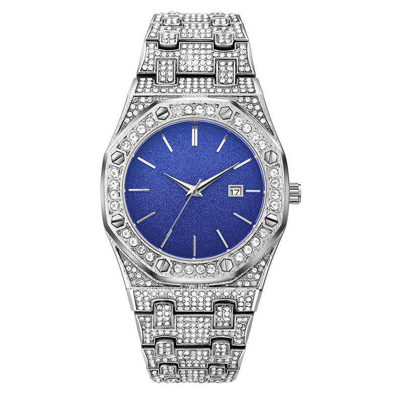 2025 Unisex Luxury Quartz Sapphire Crystal Iced Out Wristwatch Bling Diamond Leather Band 22mm Water Resistant for Men Women