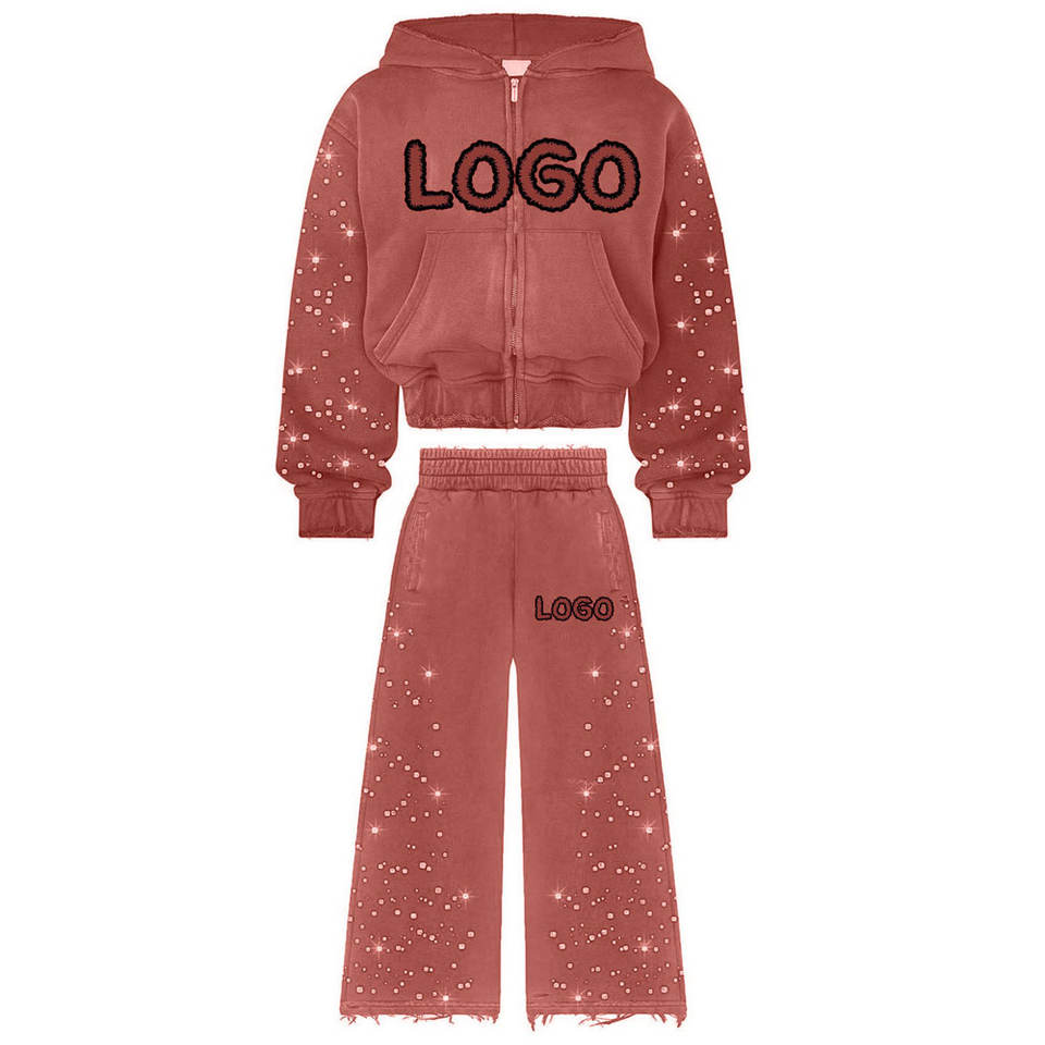 2025 unisexe deux pièces strass survêtement ensemble à manches longues ample ajusté mode nouveau look strass survêtement