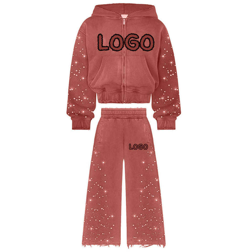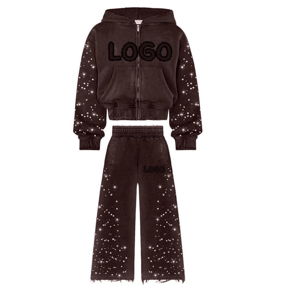 Ensemble de survêtement unisexe hiver 2025 à capuche deux pièces avec strass, manches longues, coupe ample, nouveau look tendance