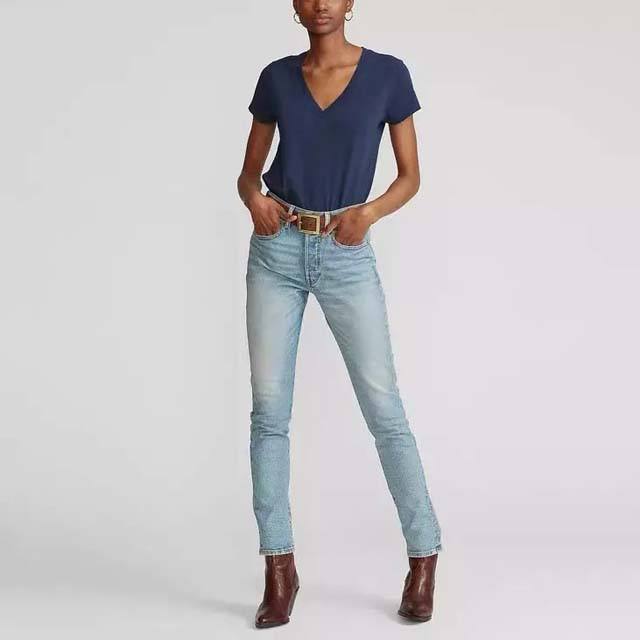 2025 col en V T-shirts personnalisés coton Polyester chemises unies bleu marine couleur logo personnalisé impression broderie t-shirt femmes