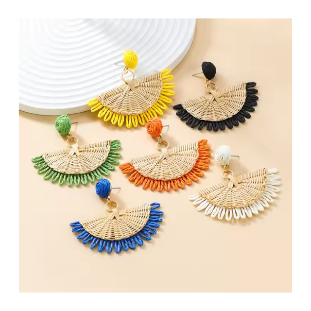 Boucles d'oreilles en rotin style bohème, design tendance, 100% faites à la main, motif rond/rectangulaire, accessoires faciles à assortir - Caryln, fournisseur Vietnamien 2026