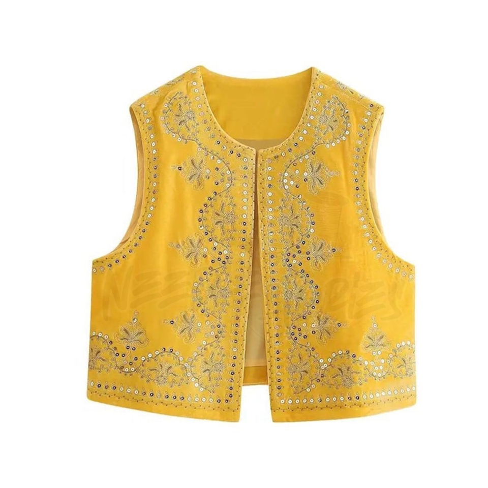 2025 Vintage Autumn Velvet Embroidered Vest Sleeveless Jacket Women V Neck Chic Waistcoats Female Fashion Vests Coat