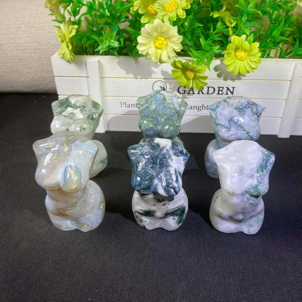 Modèle de déesse religieuse vintage 2025 en cristal, corps en agate mousse en gros pour l'artisanat décoratif en cristal