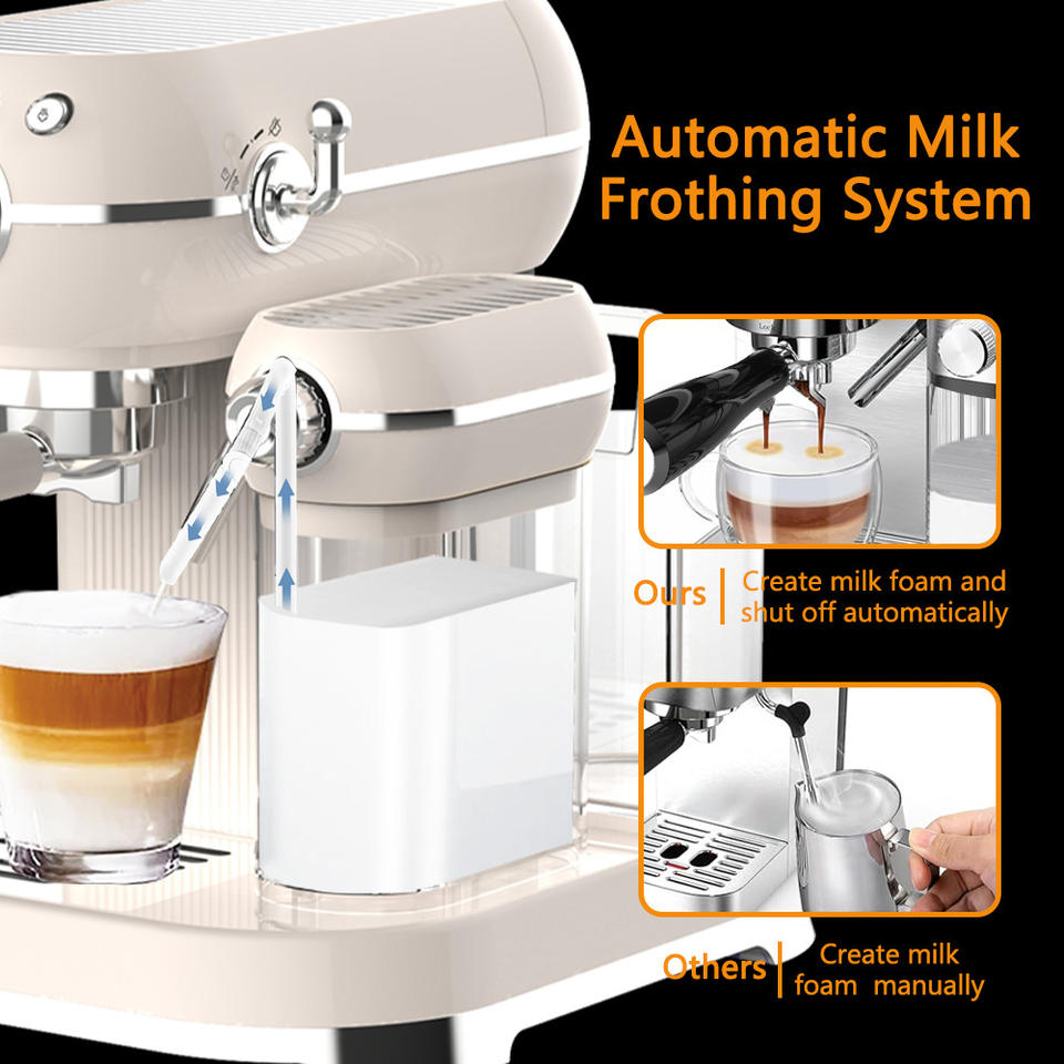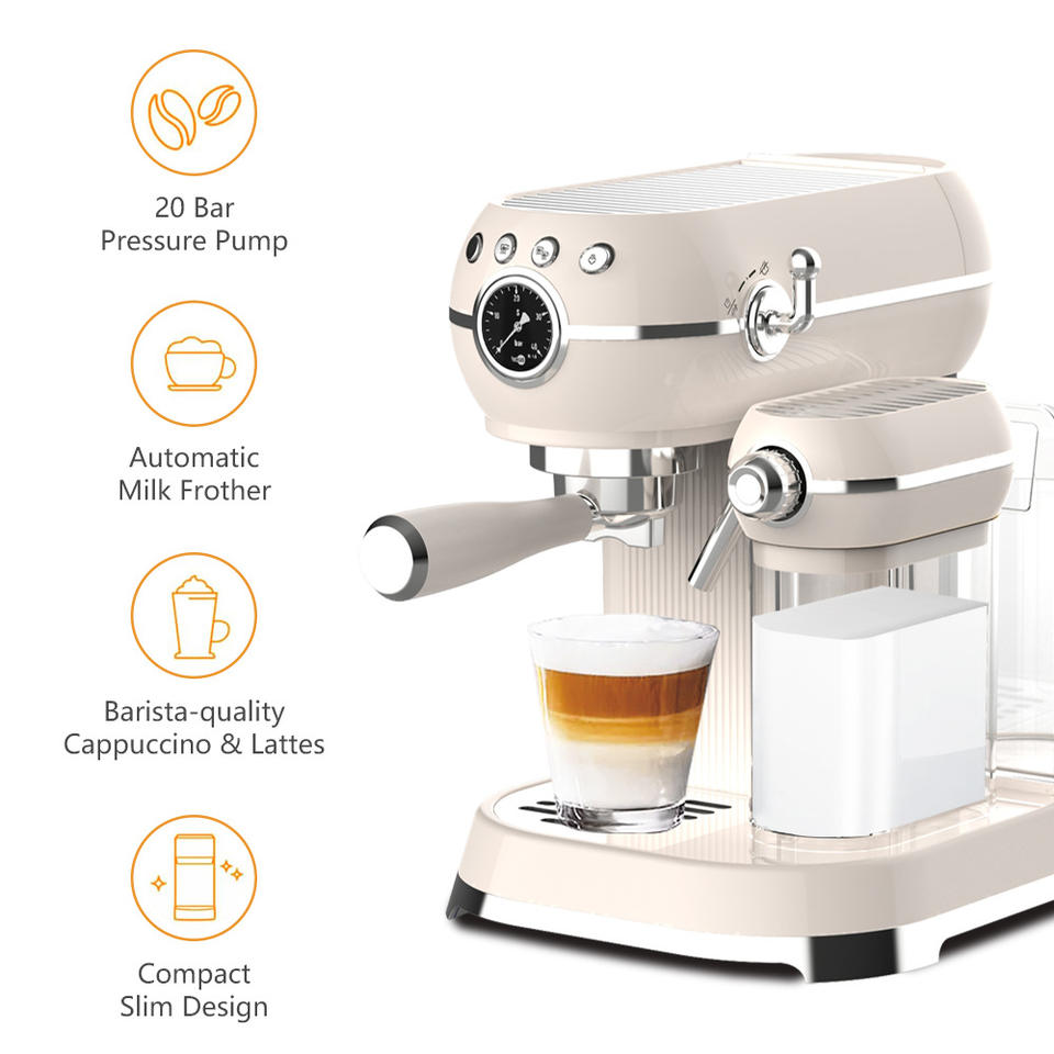 Machine à expresso semi-automatique portable vintage rétro classique 2026 avec distributeur de lait et mousseur automatique 20 bars pour usage domestique