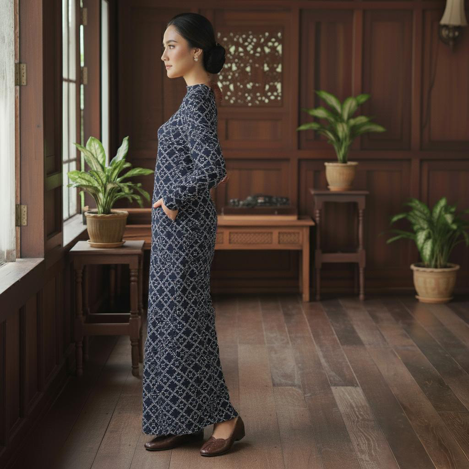 Kebaya vintage modeste brodée tendance 2025, motif géométrique imprimé écologique moderne, en crêpe Cey sans repassage, en stock