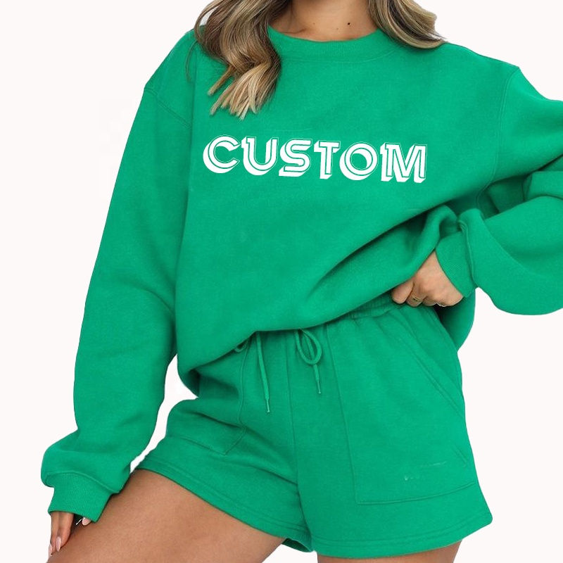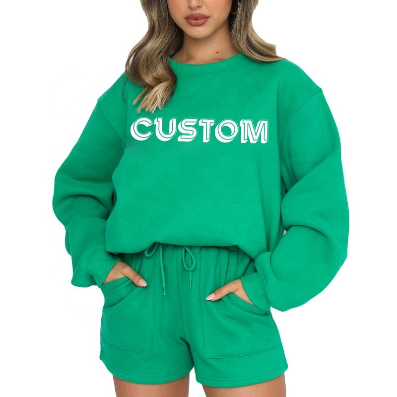 2025 vente en gros deux pièces sweats ensemble brodé pantalons de survêtement pull personnalisé surdimensionné sweat pantalon court ensemble