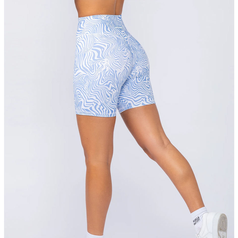 2025 White & Blue Contrast Color Good Supplier Made In Pakistan Newest Zero Rise Rib Women Yoga Shorts BY AMAZING INDUSTRIES