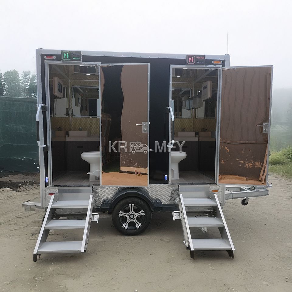 Toilettes mobiles à double bloc de 20 pieds avec remorque, salle de lavage détachable, vente en gros 2025