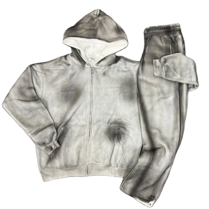 2025 gros Logo personnalisé hommes poids lourd fermeture éclair plein soleil délavé Style Streetwear lavage à l'acide blanc poids lourd polaire à capuche
