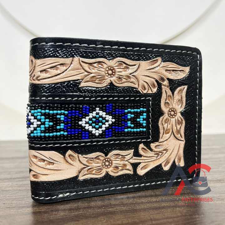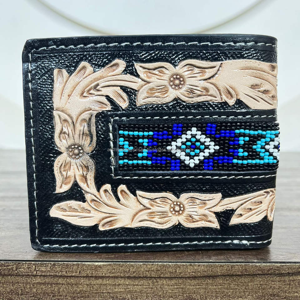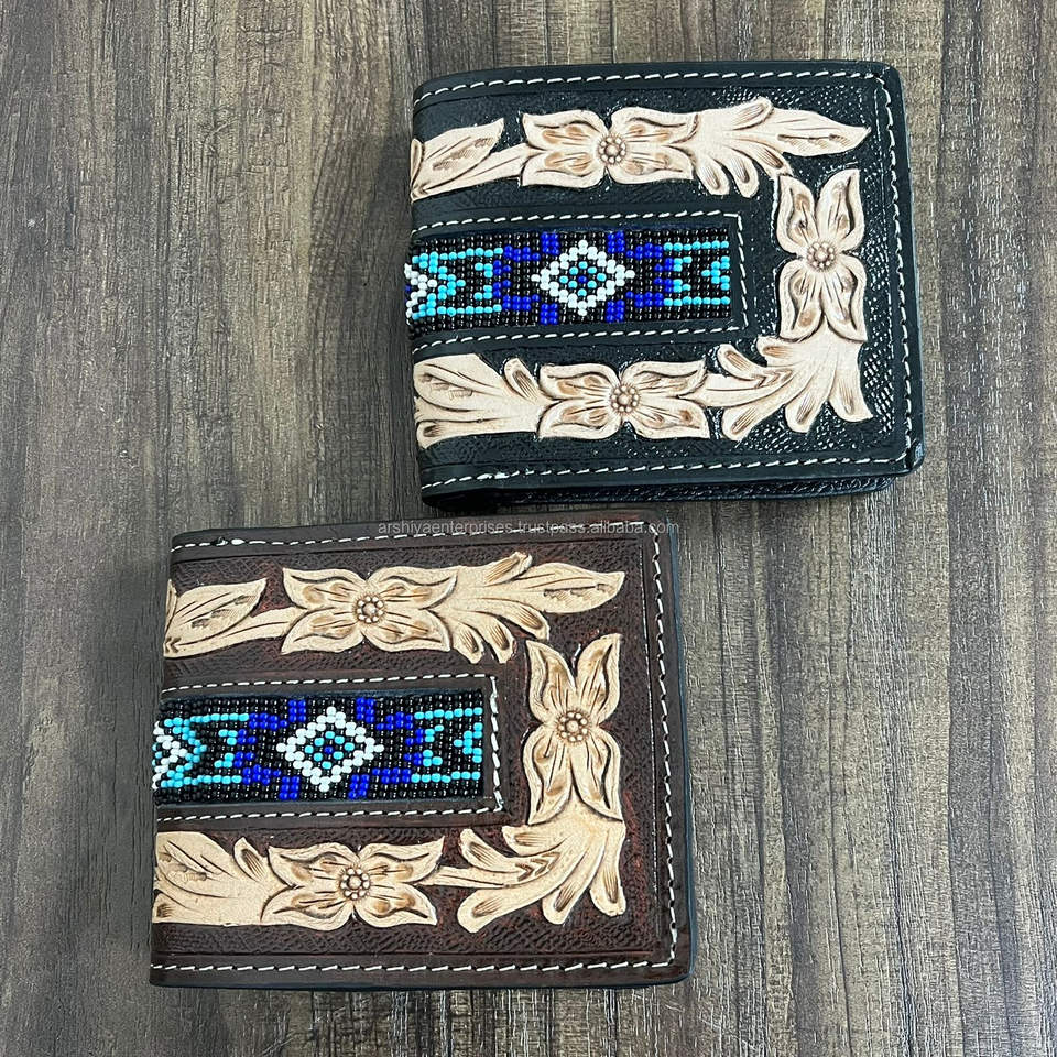 Product Name:Hand Tooled Leather Beaded Men's Bifold Wallet