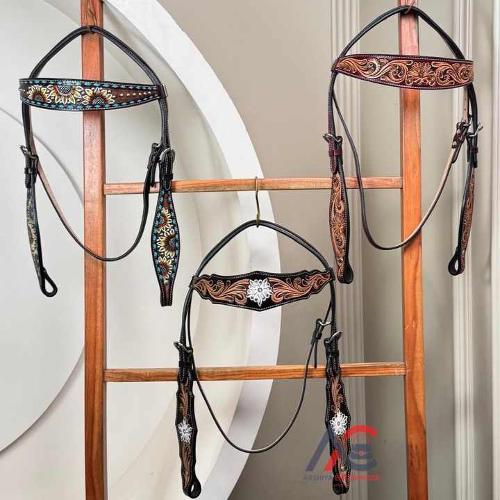 Product name:Hand Tooled Leather Horse Headstall