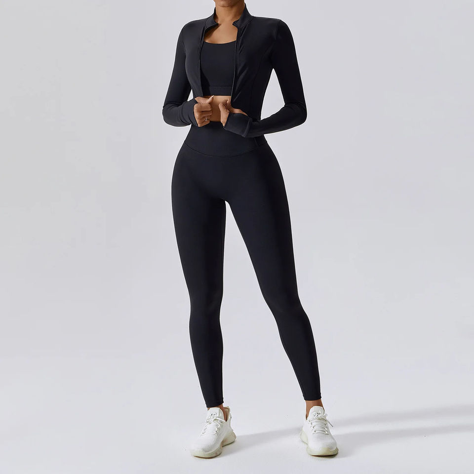 2025 Wholesale Women's 3-Piece Fitness Gym & Yoga Set Workout Seamless Long Sleeve Sports Suit Breathable Plus Size Yoga Set