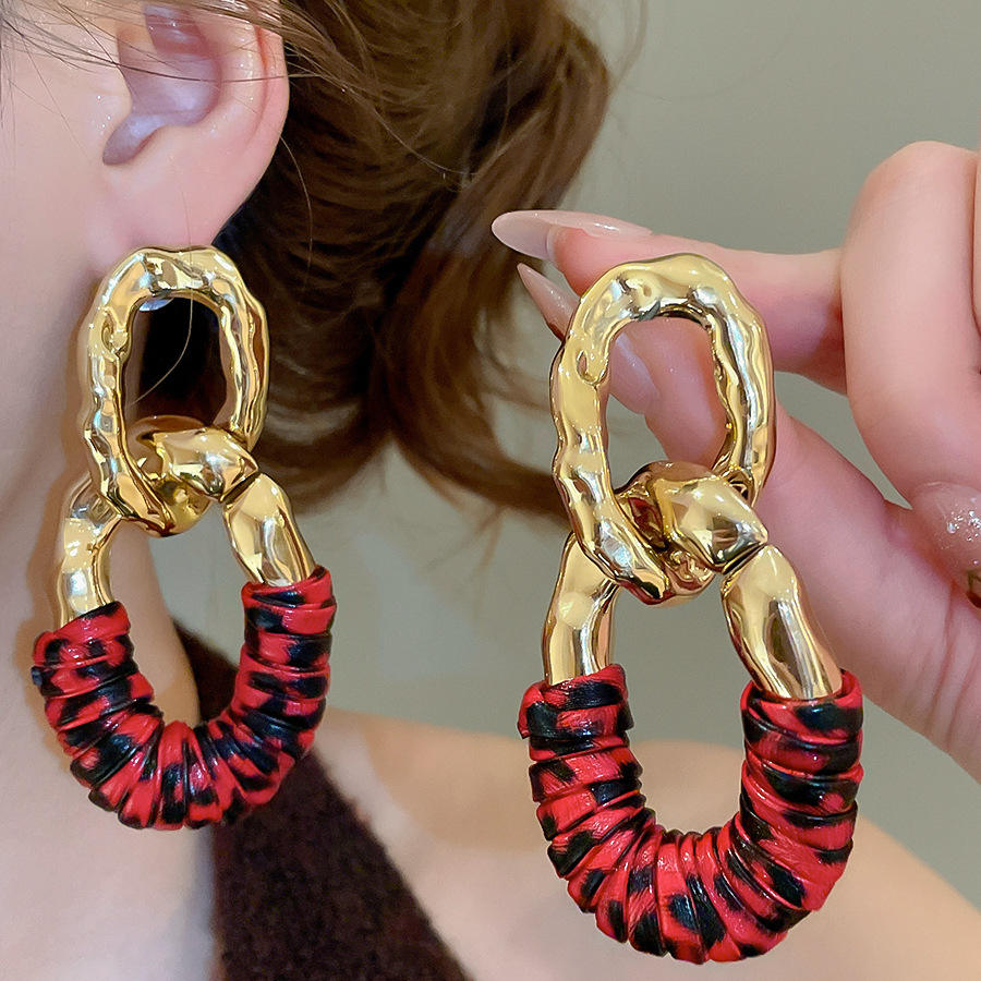 2025 hiver automne mode bijoux boucles d'oreilles femmes argent aiguille cuir enveloppé cerceau boucles d'oreilles goutte